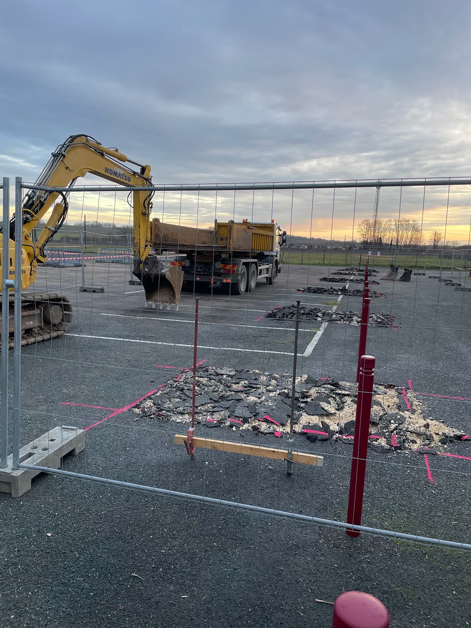 Réalisation de massifs pour ombrières photovoltaïques, site Frontenac.