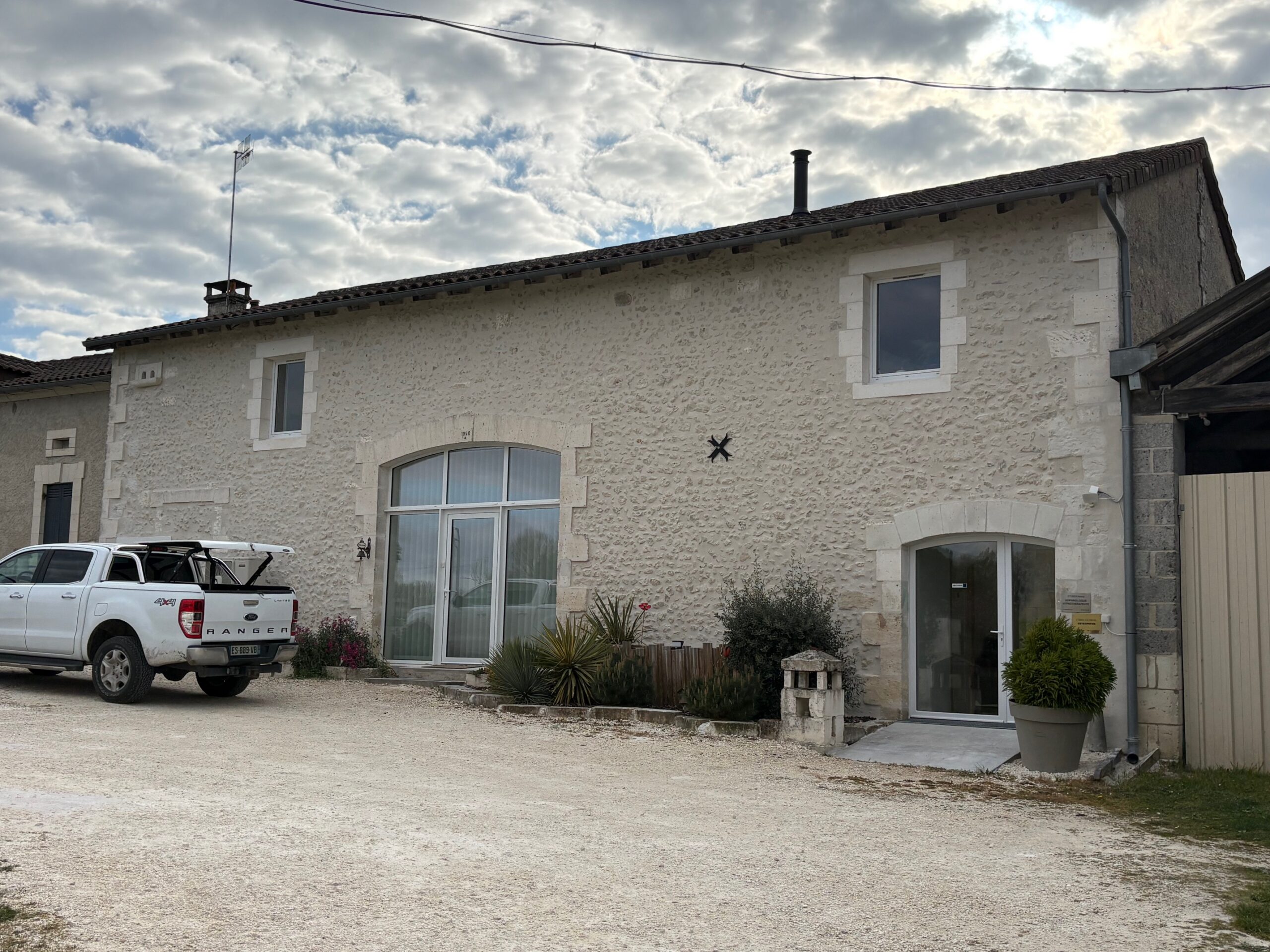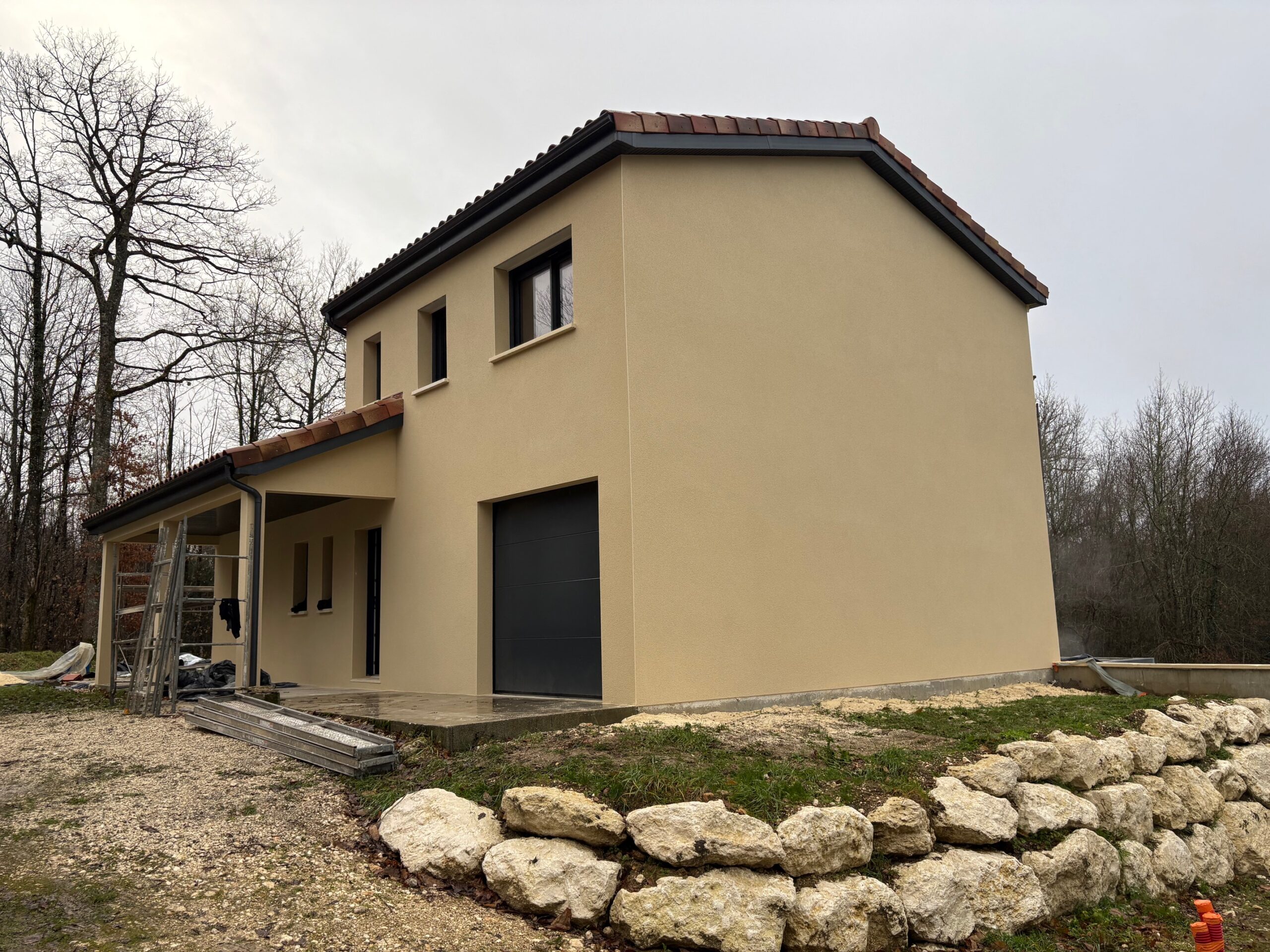 Reconstruction maison avec des moellons et pierres, création ouvertures, toiture en Canal S, enduit à la chaux commune de Cercles – La Tour Blanche.