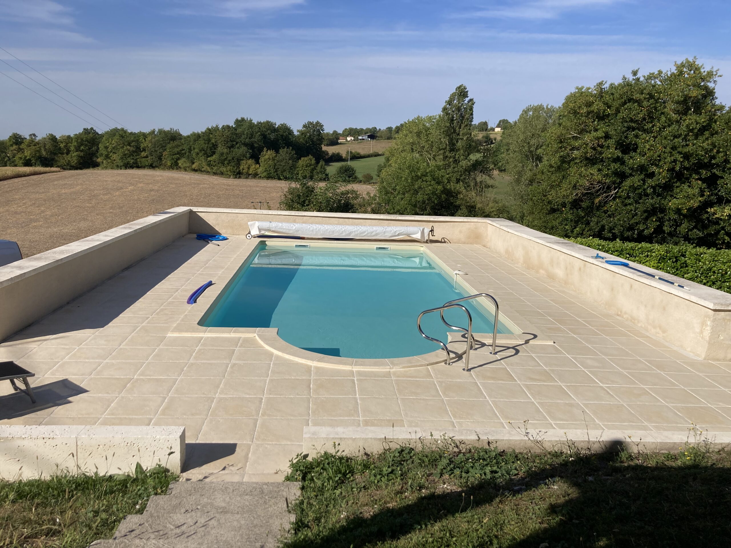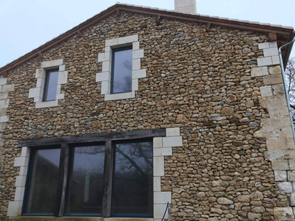 Construction d’une piscine dans une ancienne grange à Lusignac (24).