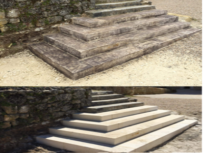 Réalisation d’un escalier en pierre de taille avant et après vieillissement